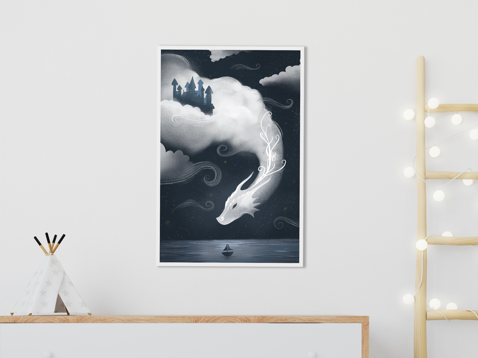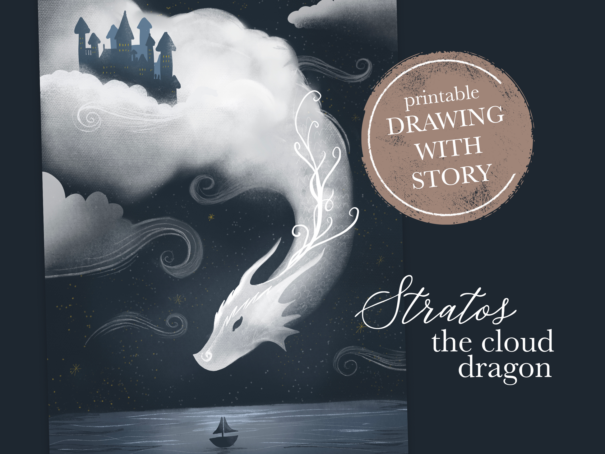 Stratos, the cloud dragon / Wall art with bedtime story
